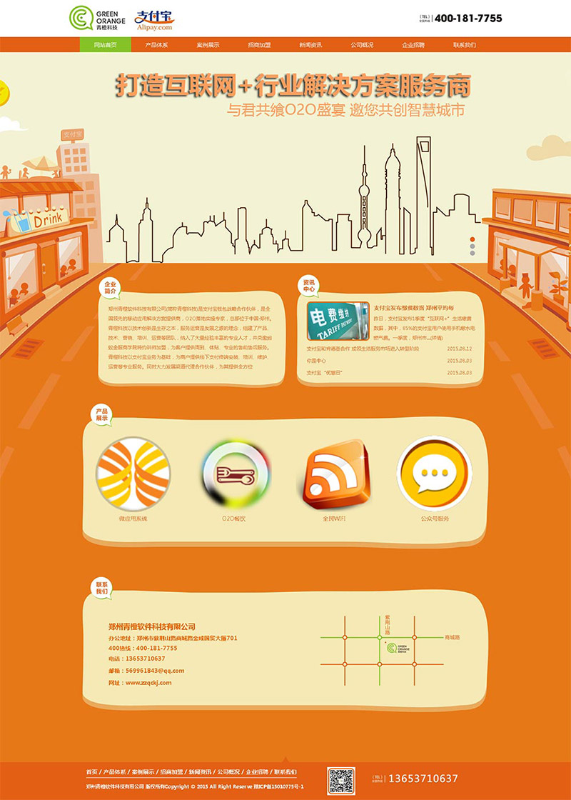 鄭州青橙軟件科技有限公司(簡稱青橙科技)是支付寶錢包戰(zhàn)略合作伙伴,是全國領先的移動應用解決方案提供商,O2O落地實操專家,總部位于中國·鄭州。
